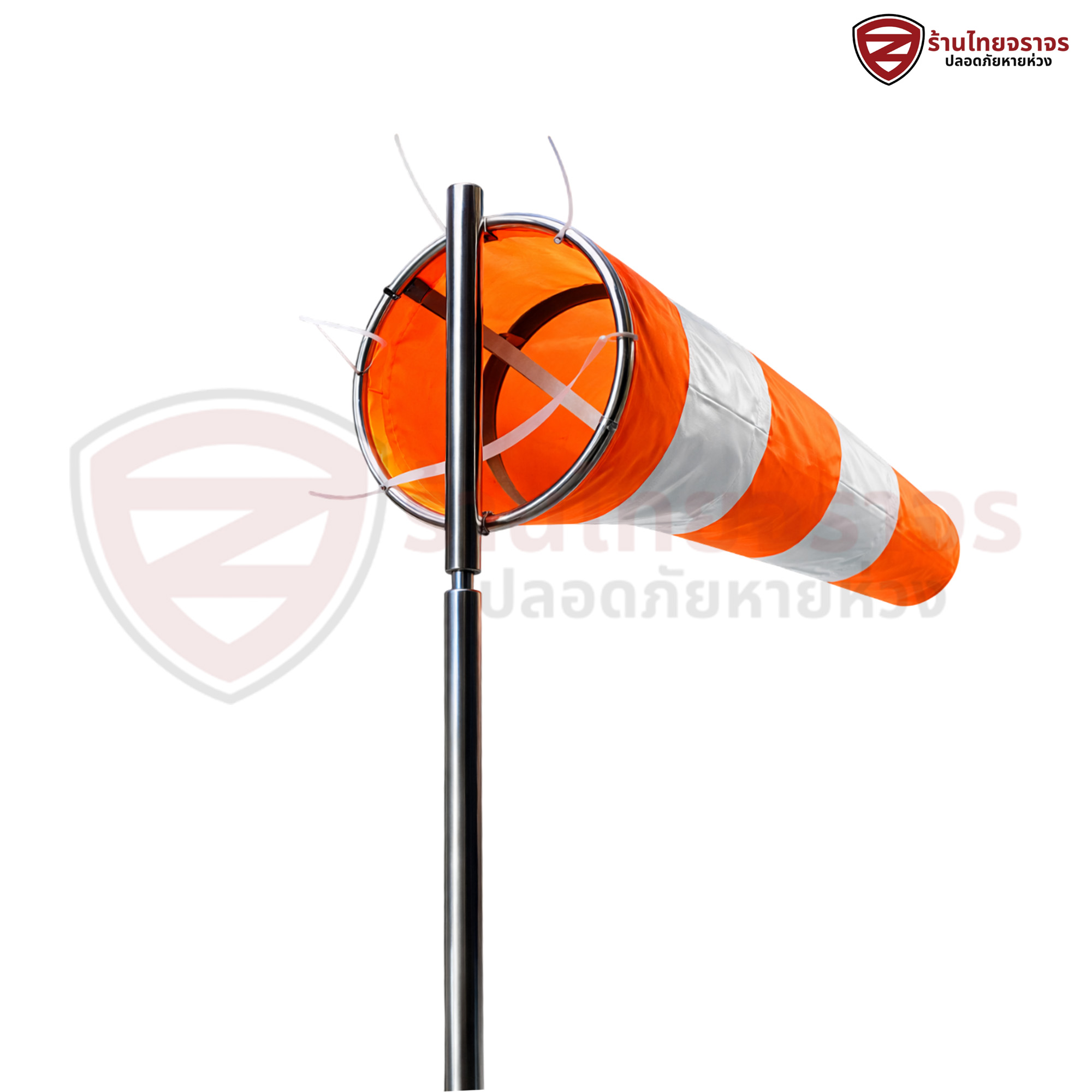 ถุงลมบอกทิศทางสีส้มสลับขาวแบบห่วงเจาะตาไก่ ผ้า oxford 210D เส้นผ่านศูนย์กลาง (Air inlet) 45 ซม Outlet dia 25 ซม. ยี่ห้อ ZECURUM