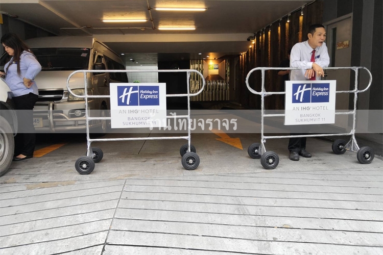 แผงกั้นสแตนเลสแบบหูช้าง 1.5 เมตร มีล้อ ได้ถูกส่งให้กับ โรงแรม ฮอลิเดย์ อินน์ เอ็กเพรส เป็นที่เรียบร้อย ขอรับรองผลว่าสิ่งที่ลูกค้าจะได้รับคือ แผงกั้นสแตนเลสหูช้างสามารถติดป้ายบ่งบอกชี้จุดตำแหน่งเตือน ซึ่งทำให้ลดการเกิดอุบัติเหตุได้