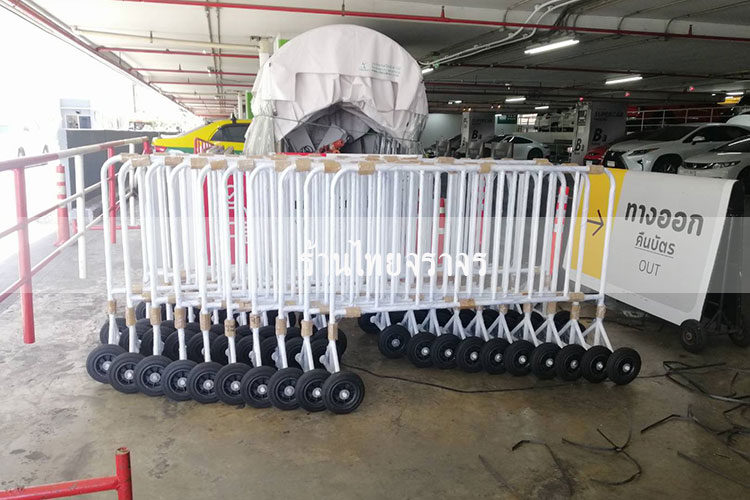 แผงกั้นเหล็กสีขาว 1.5 เมตร มีล้อ  ได้ถูกส่งให้กับ บริษัท สยามฟิวเจอร์พร็อพ เรียบร้อยแล้ว ขอรับรองผลว่า สิ่งที่ลูกค้าจะได้รับ คือ ช่วยแบ่งเขตเดินรถได้เป็นระเบียบมากยิ่งขึ้นและยังสามารถกั้นเขตห้ามเข้าได้อีกด้วย