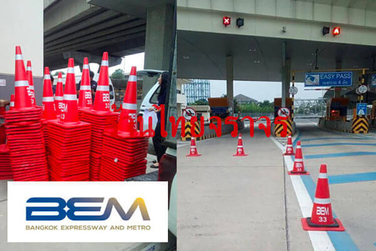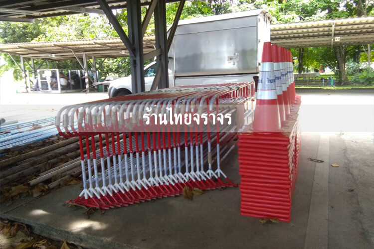 - กรวยจราจร เป็นวัสดุ EVA ซึ่งรถทับไม่แตก ที่ประเทศไทยเลือกใช้