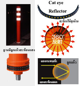 - มีลูกแก้วที่ฐานเสา และ การใข้แถบสะท้อนแสง 3M Diamond Grade (อายุการใช้งานสติ๊กเกอร์ มากกว่า 7 ปี เป็นเสป็คที่ดีที่สุดของ 3M)