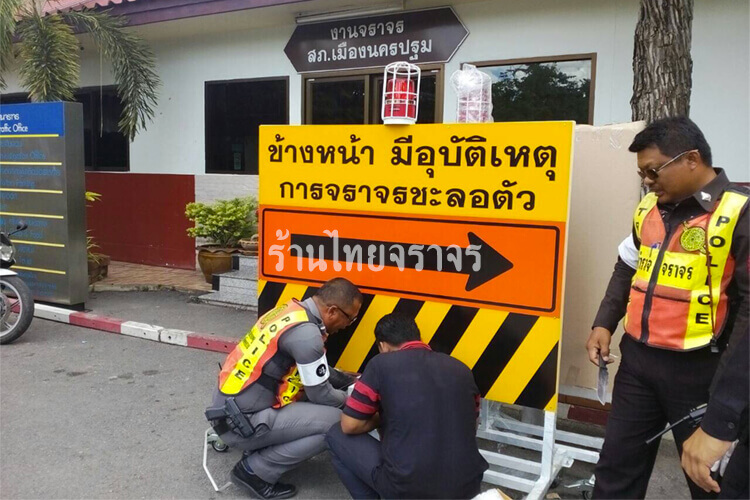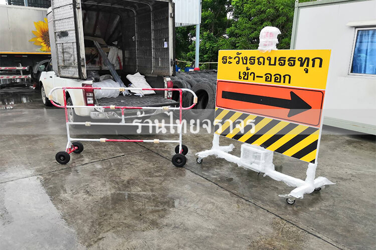 - แผงกั้นจราจรพร้อมสัญญาณไฟมีขนาดป้าย 120x150 ซม. ซึ้งทำให้มองเห็นชัดเจนมากขึ้นกว่า 2 เท่า