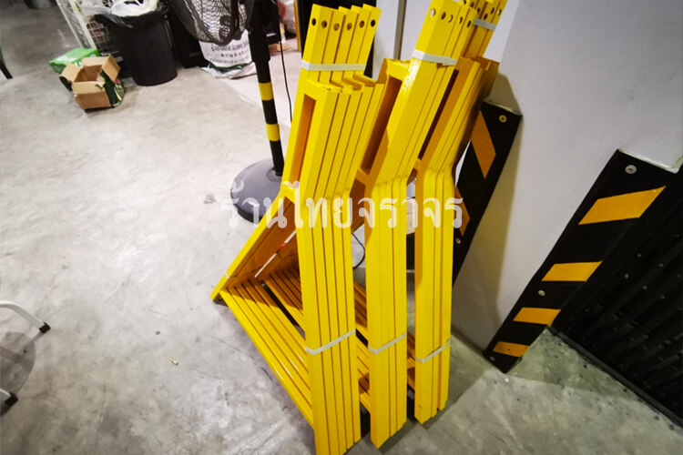 - แผงกั้นเหล็กเหลือง-ดำ สามารถถอดเก็บได้ ซึ่งทำให้ ประหยัดพื้นที่ในการจัดเก็บ
